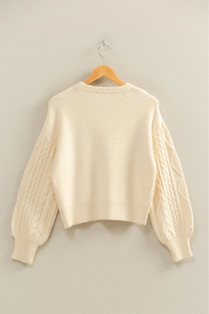 This Cable Knit Balloon Sleeve Sweater wraps you in cozy charm with its fun braided ropes and lattice patterns. The ribbed hem and cuffs keep things snug while the balloon sleeves add a playful twist to your autumn wardrobe. Perfect with high-waisted jeans or layered over a collared shirt for that effortlessly preppy vibe. Slip on ankle boots and a bold watch to complete your look with a wink!