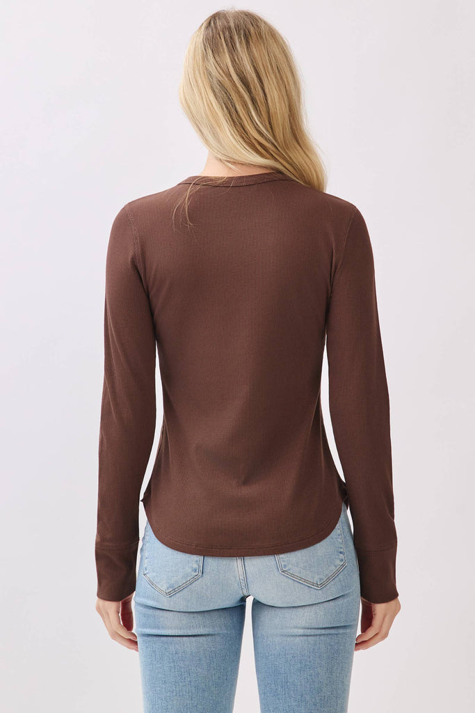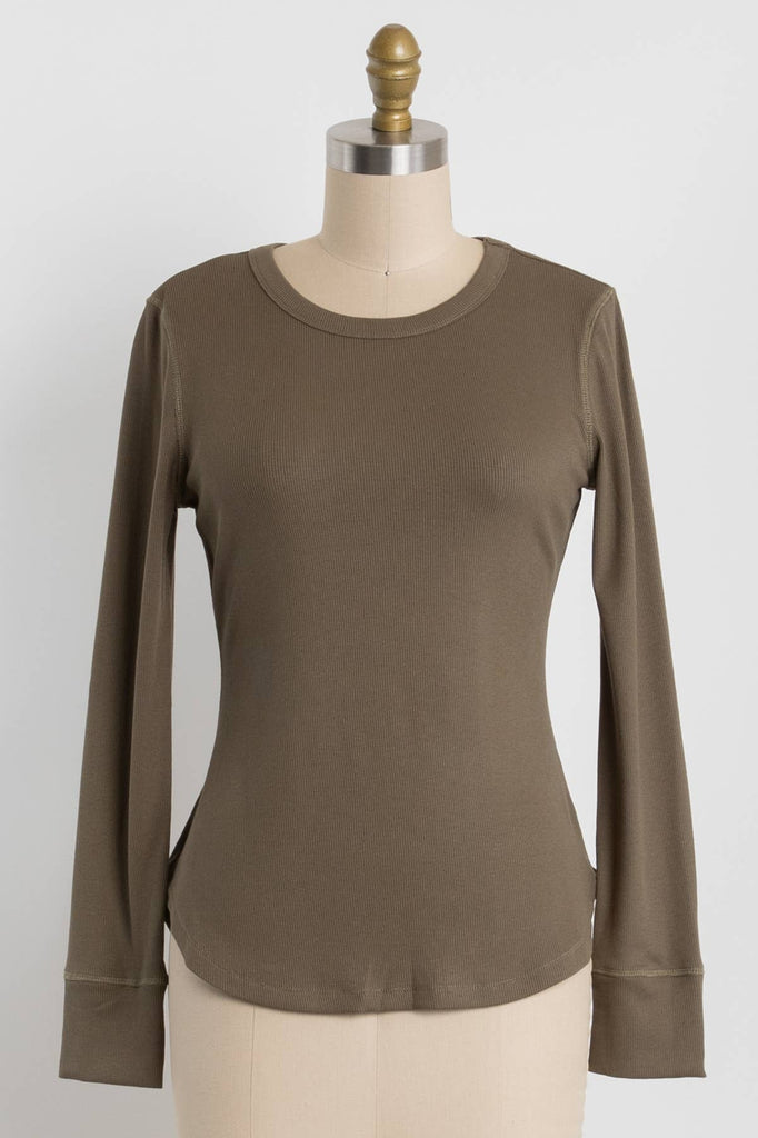 A timeless staple with a modern fit. This ribbed crew neck long sleeve is designed with a flattering fitted silhouette and a rounded hem that pairs effortlessly with your favorite denim, skirts, or layered looks. Made from a soft cotton-spandex blend, it offers breathable comfort with just the right amount of stretch to move with you. Perfect for layering or wearing on its own, this top is an essential piece for every season.