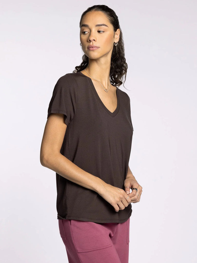 Effortlessly soft and versatile, the Tatiana Tee is your go-to everyday essential. Featuring a flattering v-neckline and relaxed fit, this lightweight short-sleeve top pairs perfectly with everything from joggers to denim. Designed with comfort in mind, it’s made from breathable, easy-care fabric that moves with you throughout the day.