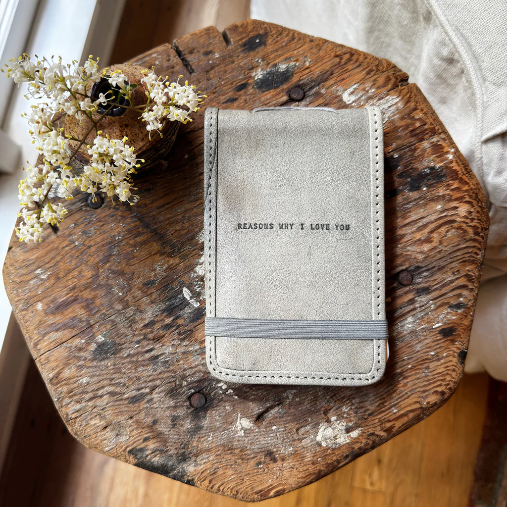 These leather journals in stone color make great gifts! Each one has unlined handmade paper inside and has an elastic band on the bottom to keep everything in place.