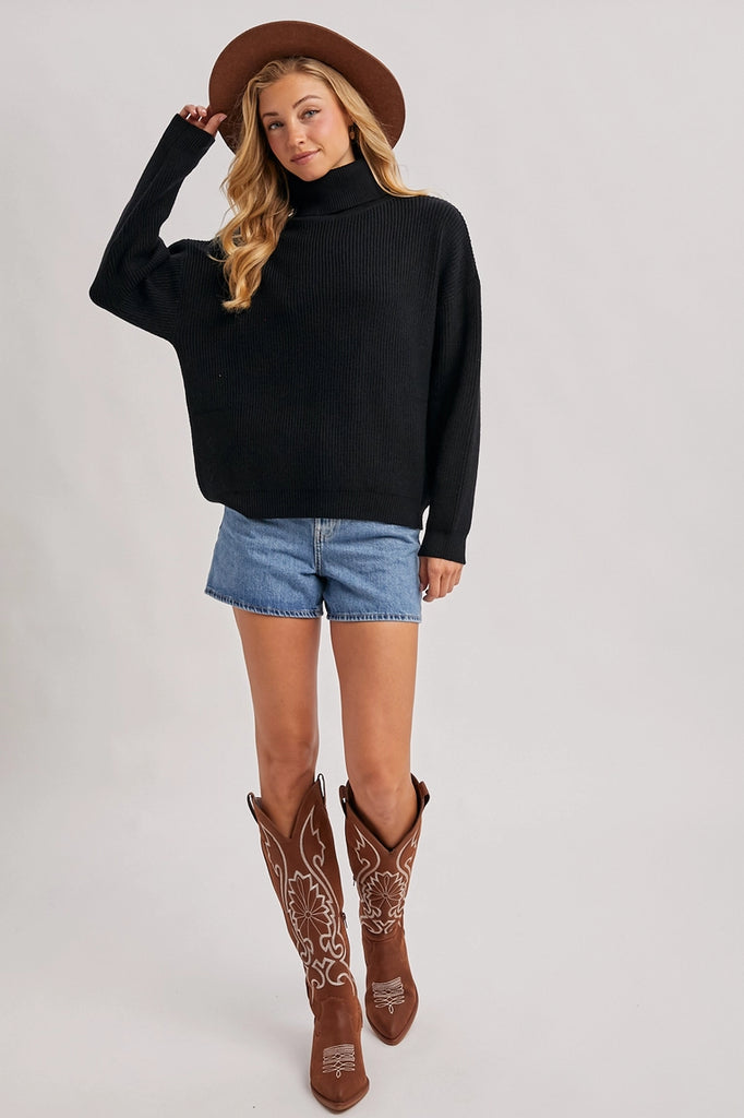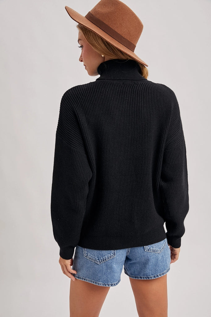 Turtle Neck Ribbed Knit Sweater
